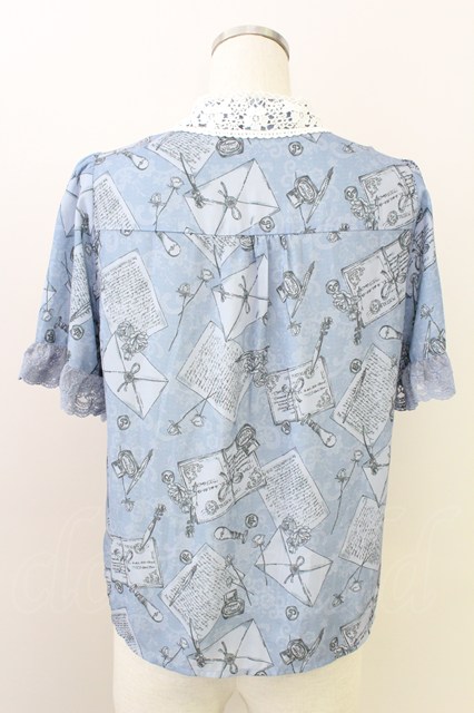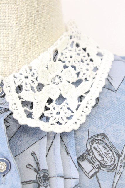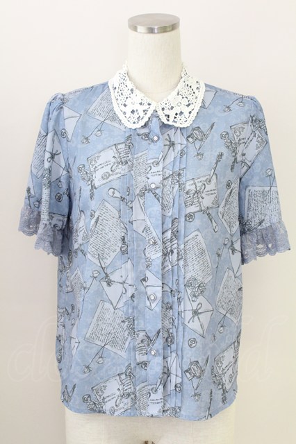 axes femme POETIQUE / プリュムプリントレース襟ブラウス ブルー T-25-09-05-012-AX-TO-SA-ZI