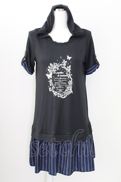 axes femme / フード付チュニックワンピース M ブラック×ネイビー T-25-09-05-018-AX-OP-SA-ZI [2100060000037660-T-25-09-05-018-AX-OP-SA-ZI]