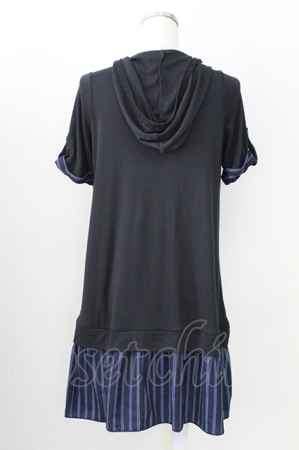 axes femme / フード付チュニックワンピース M ブラック×ネイビー T-25-09-05-018-AX-OP-SA-ZI