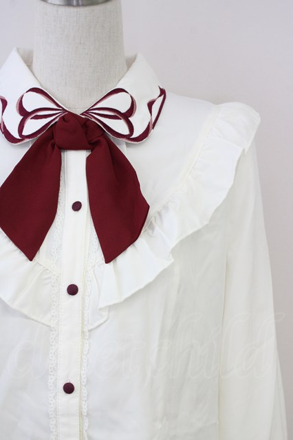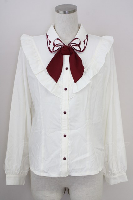axes femme POETIQUE / カラーリボン刺繍ブラウス M キナリ T-25-09-05-002-AX-BL-SA-ZI
