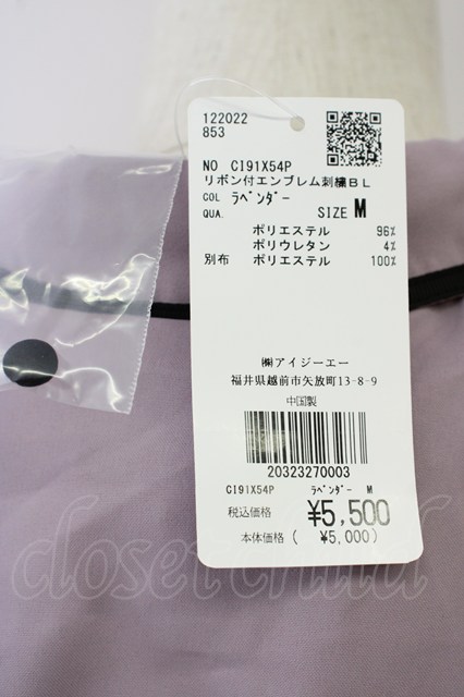 axes femme POETIQUE / リボン付エンブレム刺繍BL M ラベンダー T-25-09-05-005-AX-BL-SA-ZI [2100060000037658-T-25-09-05-005-AX-BL-SA-ZI]