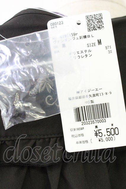 axes femme POETIQUE / ヴァンダンジュ刺繍ブラウス M ブラック T-25-09-05-011-AX-BL-SA-ZI [2100060000037656-T-25-09-05-011-AX-BL-SA-ZI]