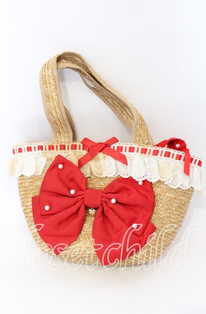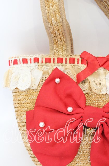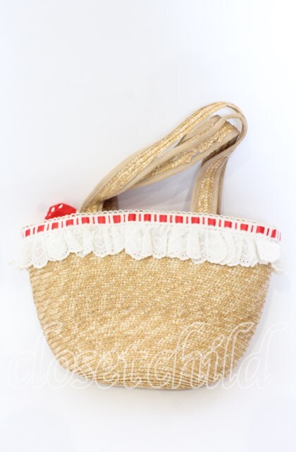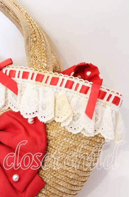 Angelic Pretty / Lovelyドットストローバッグ ナチュラル×アカ O-25-09-12-028-AP-BG-IG-OS