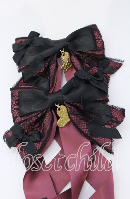 LOTUS ribbon / ハートチャームレースリボンツインバレッタ ワイン×クロ O-25-09-12-012-EL-AC-IG-ZT485-F001