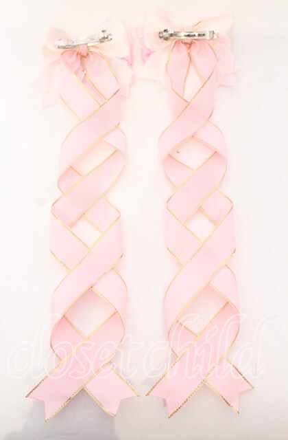 LOTUS ribbon / ハートチャームロングツインテールリボンバレッタ ピンク O-25-09-12-015-EL-AC-IG-OS