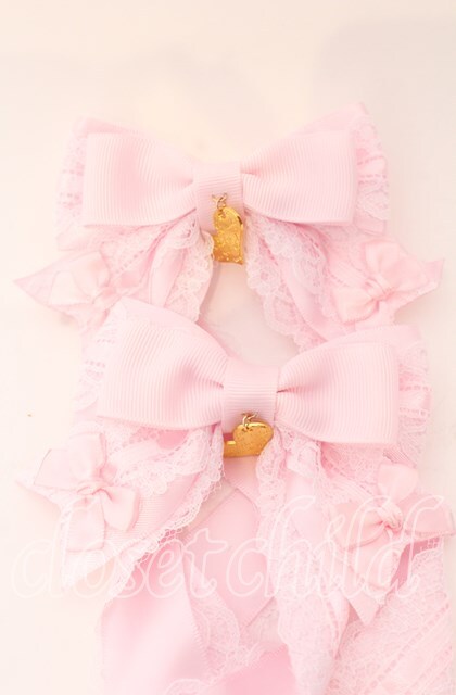 LOTUS ribbon / ツインリボンバレッタ ピンクリボン×レース×ハートチャーム O-25-09-12-058-EL-AC-OW-OS [2100080000058732-O-25-09-12-058-EL-AC-OW-OS]