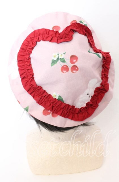 Chalmiere / チェリーバニー柄ベレー 27×30cm ピンク O-25-09-12-046-LO-AC-OW-ZT-K004