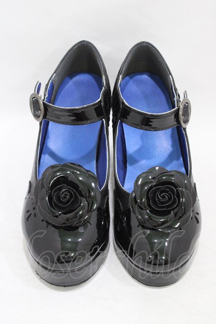 YOSUKE by Leche / コサージュ付ストラップシューズ M/23.0〜23.5cm ブラックエナメル H-25-09-18-1001-0-SH-NS-ZH