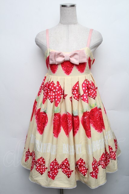 Bacio Bouquet / Sweet Strawberryハイウエストジャンパースカート S イエロー S-26-01-23-032-0-OP-SA-ZT041
