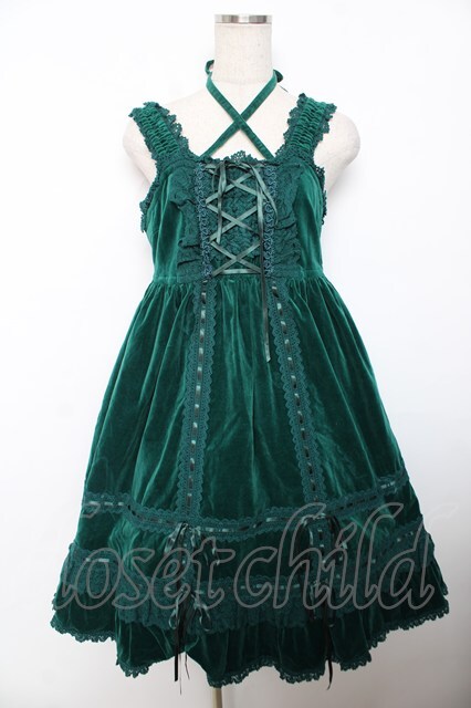 BABY, THE STARS SHINE BRIGHT / 別珍ベビードールジャンパースカート グリーン Y-25-12-08-114-BA-OP-SZ-ZY
