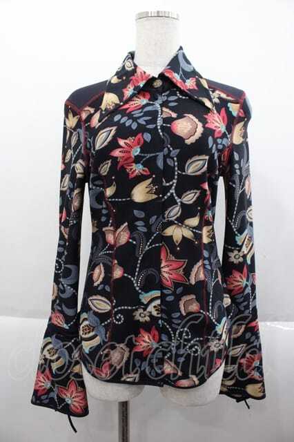 Ozz On / 植物柄スナップボタンシャツ 黒X赤Xブラウン I-25-09-18-022-OO-BL-HD-ZI [2100060000026169-I-25-09-18-022-OO-BL-HD-ZI]