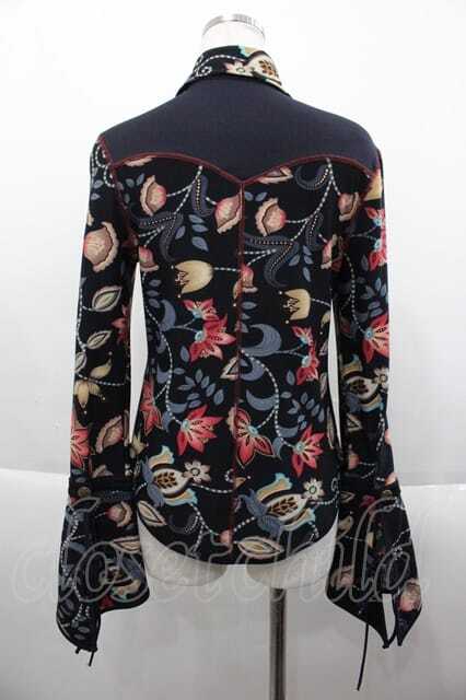 Ozz On / 植物柄スナップボタンシャツ 黒X赤Xブラウン I-25-09-18-022-OO-BL-HD-ZI