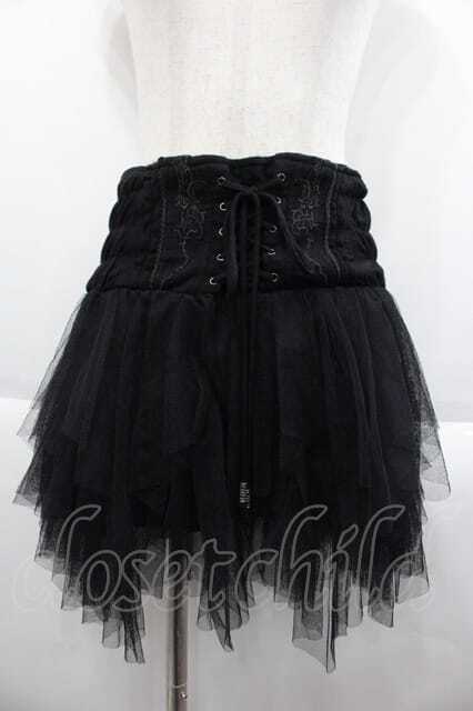 Ozz Croce / フロント編み上げチュールスカート 黒 I-25-09-18-101-OO-SK-HD-ZI [2100060000038096-I-25-09-18-101-OO-SK-HD-ZI]