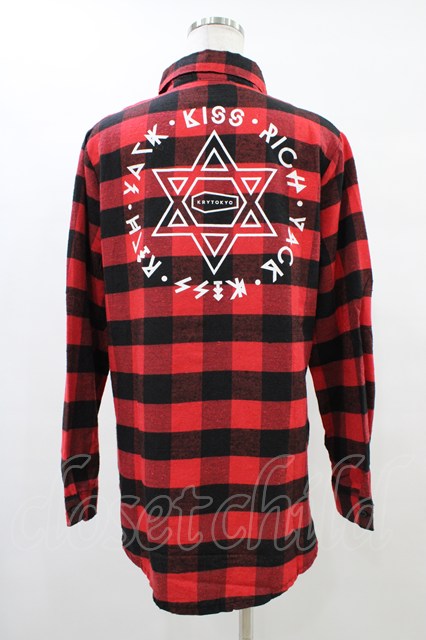 KRY CLOTHING / チェックプリントスリーブシャツ 赤 H-25-10-01-057-EL-BL-KB-ZH