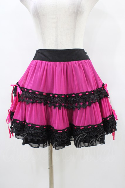 ALGONQUINS / 配色レースフリルスカート 黒×ピンク H-25-10-01-045-AL-SK-KB-ZH