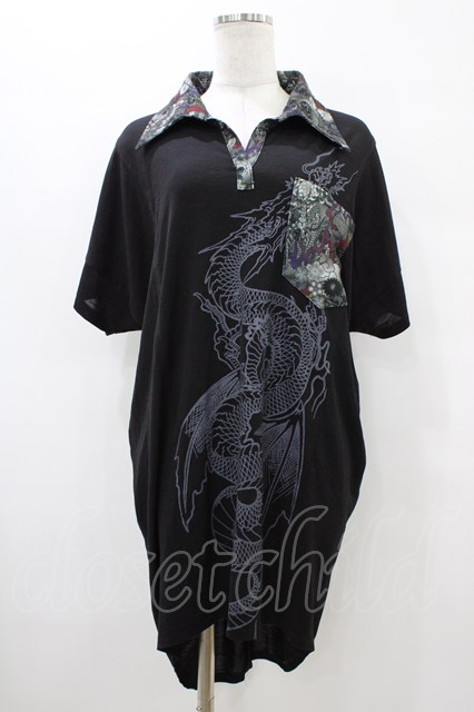Qutie Frash / 和柄襟ロングトップス 黒 H-25-10-01-056-QU-TO-KB-ZH