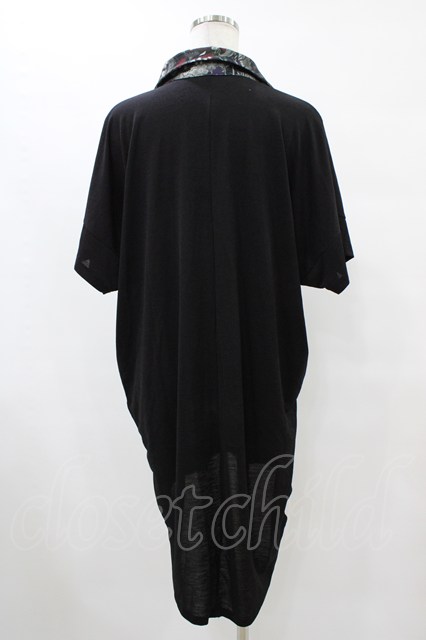 Qutie Frash / 和柄襟ロングトップス 黒 H-25-10-01-056-QU-TO-KB-ZH [2100030000036352-H-25-10-01-056-QU-TO-KB-ZH]