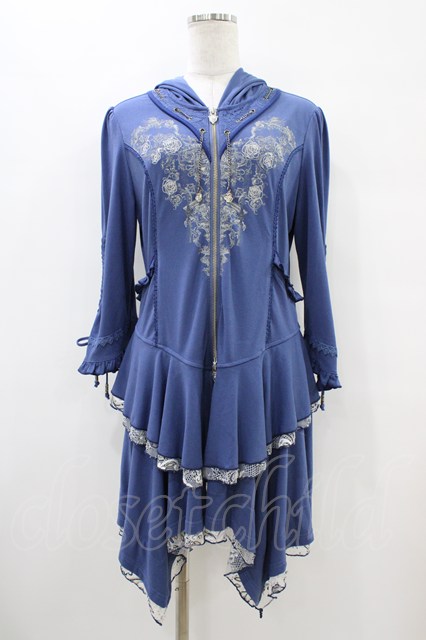 Ozz oneste / フード付き薔薇刺繍ZIPジャケット 青 H-25-10-01-050-OO-JA-KB-ZH