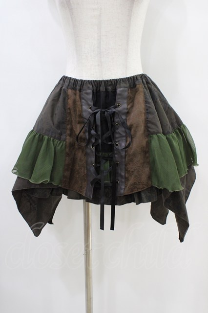 STEAM / イレギュラーフリルミニスカート 茶×カーキ H-25-10-01-014-HN-SK-KB-ZH