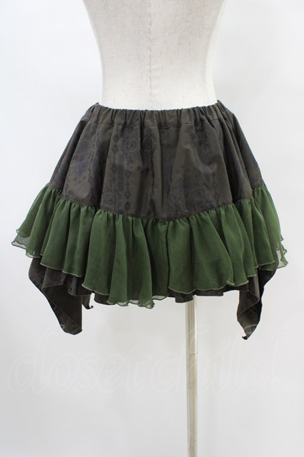 STEAM / イレギュラーフリルミニスカート 茶×カーキ H-25-10-01-014-HN-SK-KB-ZH [2100030000064117-H-25-10-01-014-HN-SK-KB-ZH]