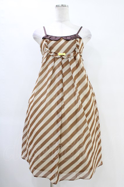 Emily Temple cute / ジョーゼットストライプノースリーブワンピース 茶 H-25-10-02-025-ET-OP-KB-ZH [2100030000073489-H-25-10-02-025-ET-OP-KB-ZH]