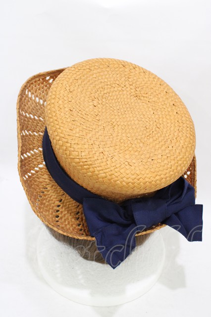 Jane Marple / グログランリボンストローハット ブラウン×ネイビー H-25-10-02-007-JM-AC-KB-ZH [2100030000073492-H-25-10-02-007-JM-AC-KB-ZH]