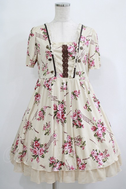 axes femme / 花柄ワンピース M 生成り H-25-10-01-1037-AX-OP-NS-ZH