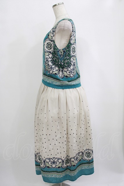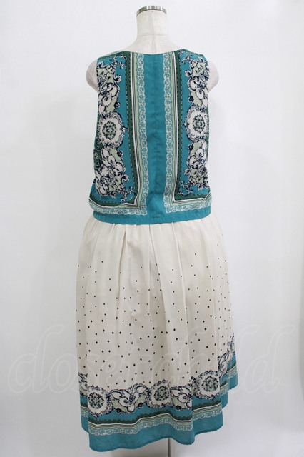 axes femme / スカーフ柄ワンピース M ブルー/アイボリー H-25-10-01-1014-AX-OP-NS-ZH [2100030000073548-H-25-10-01-1014-AX-OP-NS-ZH]