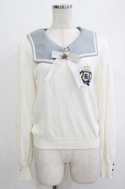 Amavel / セーラー衿ニットプルオーバー Free アイボリー/ブルー H-25-10-01-1062-CA-TO-NS-ZH