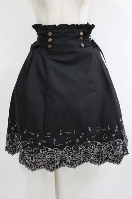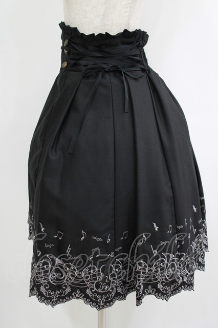 axes femme POETIQUE / 楽器スカラップ刺繍スカート M ブラック H-25-10-01-1021-AX-SK-NS-ZH