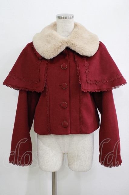 axes femme kawaii / ケープ付ショートコート M ワイン H-25-10-01-1039-AX-CO-NS-ZH