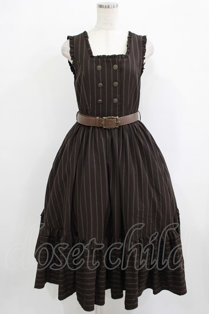 Forest Wardrobe(海外ロリータブランド) / 翠の館ジャンパースカートセット S ダークブラウン(ストライプ) H-25-10-01-1034-GO-OP-NS-ZH [2100030000073580-H-25-10-01-1034-GO-OP-NS-ZH]