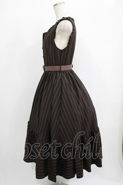 Forest Wardrobe(海外ロリータブランド) / 翠の館ジャンパースカートセット S ダークブラウン(ストライプ) H-25-10-01-1034-GO-OP-NS-ZH