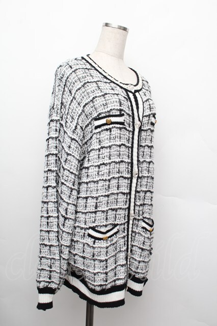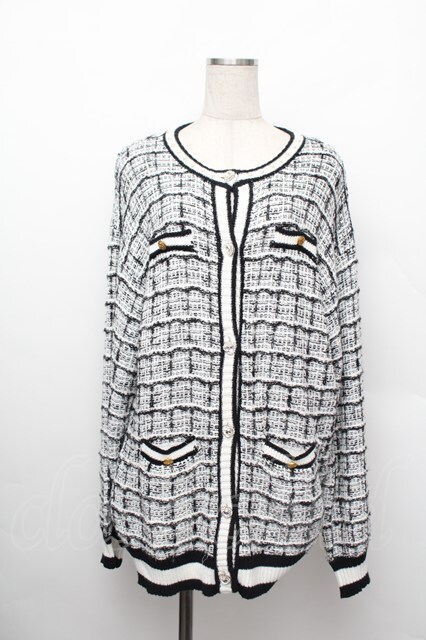 Ank Rouge / ツイードニットカーデ 黒x白 S-25-12-20-1010-CA-TO-HR-ZS