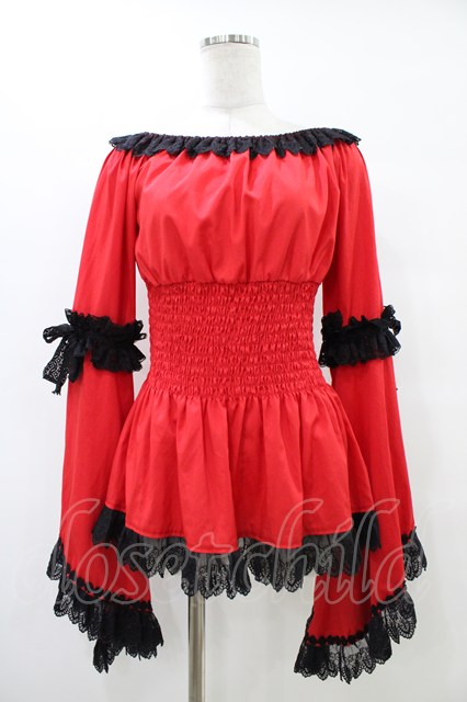 Triple fortune / シャーリングブラウス(長袖) M 赤 H-25-10-03-050-EL-BL-KB-ZH