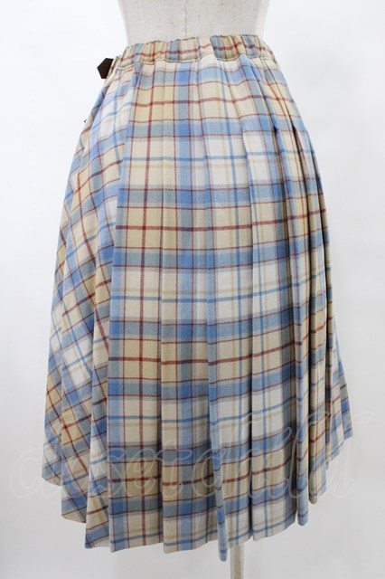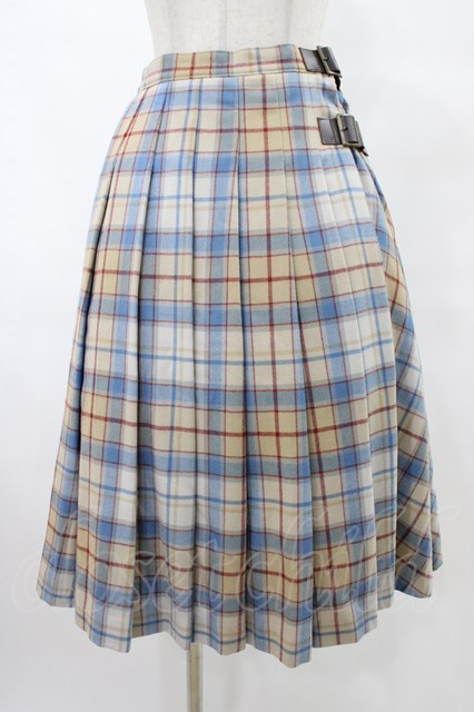 Jane Marple / ウールタータンのダブルベルトスカート ブルーグレー H-25-10-03-039-JM-SK-KB-ZH
