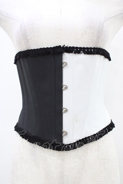 Moi-meme-Moitie / バイカラーショートコルセット S ブラック×ホワイト H-25-10-03-021-MO-ZA-KB-ZH