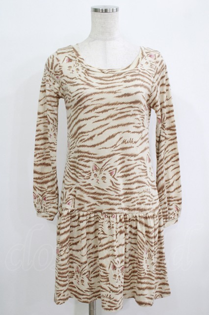 MILK / Kittenワンピース ベージュベース×ブラウンCAT H-25-10-04-036-ML-OP-KB-ZH [2100030000073660-H-25-10-04-036-ML-OP-KB-ZH]