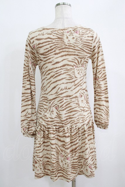 MILK / Kittenワンピース ベージュベース×ブラウンCAT H-25-10-04-036-ML-OP-KB-ZH