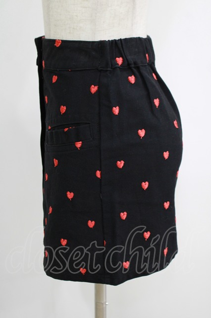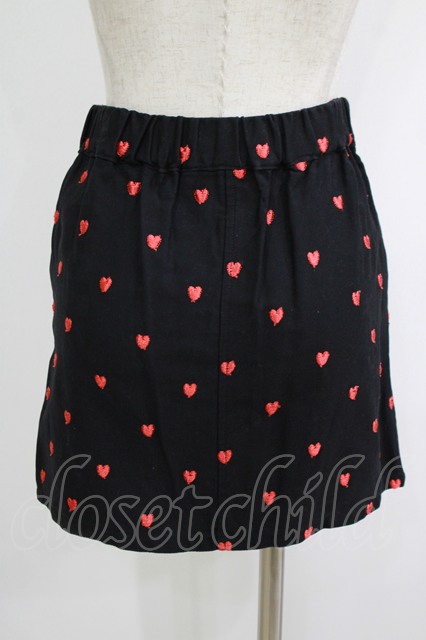 lilLilly / ハート刺繍ミニスカート 黒 H-25-10-04-047-LO-BL-KB-ZH