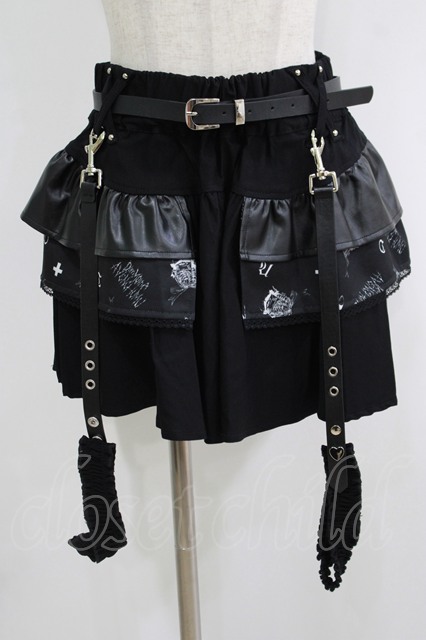 AVENCHUMU / 【AVENCHUMU×DimMoire】garter belt frill original print skirt ブラック H-25-10-04-031-LO-SK-KB-ZH [2100030000073693-H-25-10-04-031-LO-SK-KB-ZH]