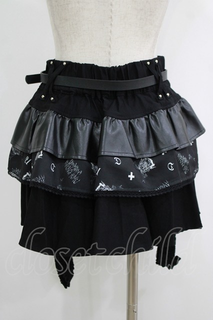 AVENCHUMU / 【AVENCHUMU×DimMoire】garter belt frill original print skirt ブラック H-25-10-04-031-LO-SK-KB-ZH