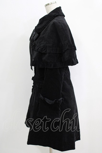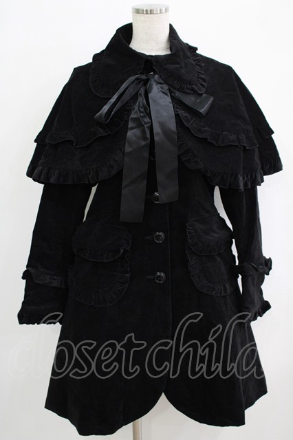PEACE NOW / フリルケープ付別珍コート 黒 H-25-10-04-006-PU-CO-KB-ZH [2100030000073683-H-25-10-04-006-PU-CO-KB-ZH]