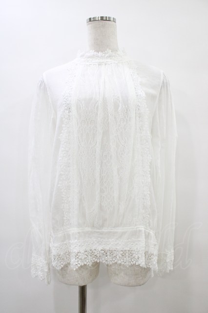 Jane Marple Dans Le Salon / レース切替バックボタンブラウス ホワイト H-25-10-04-1004-JM-BL-KB-ZH [2100030000055899-H-25-10-04-1004-JM-BL-KB-ZH]
