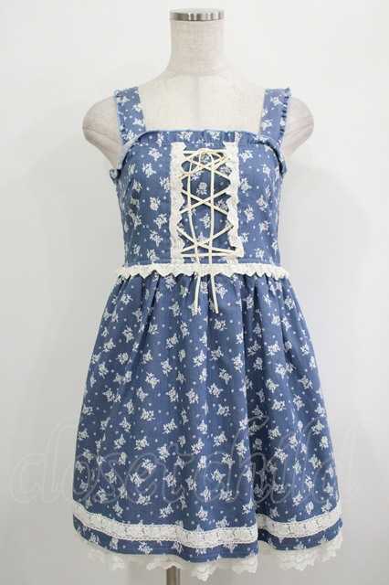 Ank Rouge / レースアップジャンパースカート M ブルー H-25-10-05-029-CA-OP-NS-ZH