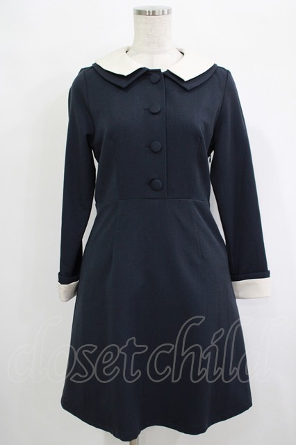 Fi.n.t / 配色襟ワンピース Free ネイビー H-25-10-05-027-CA-OP-NS-ZH [2100030000073639-H-25-10-05-027-CA-OP-NS-ZH]
