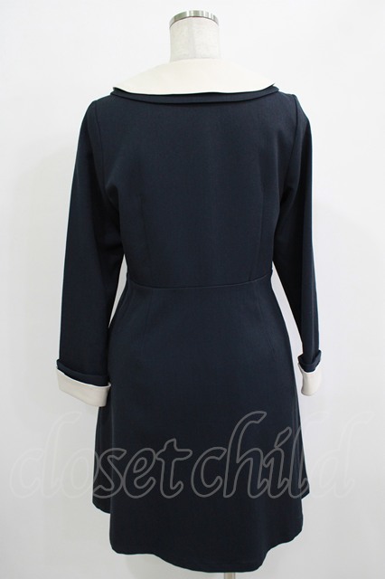 Fi.n.t / 配色襟ワンピース Free ネイビー H-25-10-05-027-CA-OP-NS-ZH