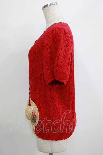 PINK HOUSE / Straw-berry Hatモチーフカーディガン Free レッド H-25-10-05-043-LO-TO-NS-ZH