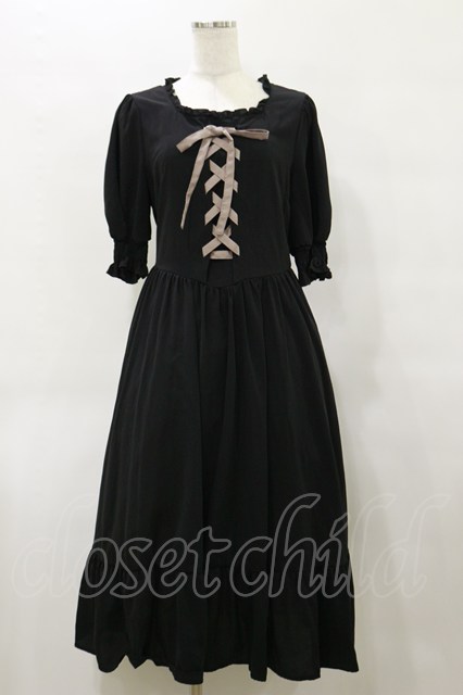 m petit by misako / AMレースアップワンピース L ブラック H-25-10-06-063-LO-OP-NS-ZH [2100030000073836-H-25-10-06-063-LO-OP-NS-ZH]
