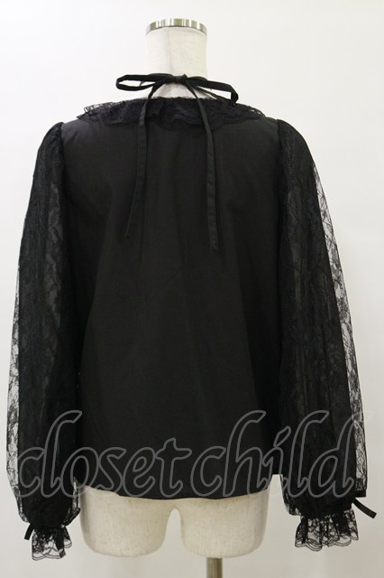 Lovely Tency / 眞白ありすコラボ/レーススリーブブラウス M ブラック H-25-10-06-041-LO-BL-NS-ZH [2100030000073879-H-25-10-06-041-LO-BL-NS-ZH]